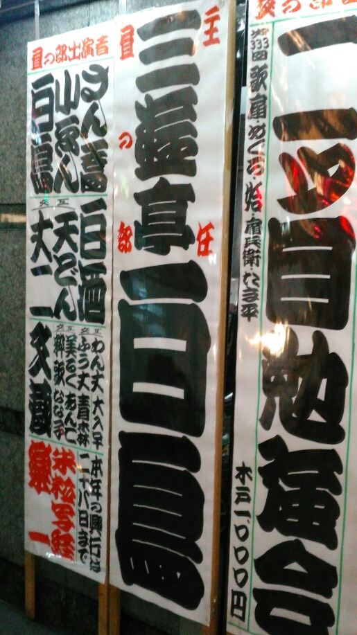 JUGEMテーマ:落語 今年最後の寄席見物。 立錐の余地もない大入り。 木戸待ちしてたら、通りがかりという柳家喬太郎師匠が現れ、白鳥師匠をディスって笑いを取る一幕も。 個人的には当館に上がっていただいている白酒師匠と居島一平さん(米粒写経)一緒に観れてお得感倍増でした。 昼の部トリ 三遊亭白鳥『富Q』 夜の部二ツ目勉強会トリ 古今亭始『子別れ(下)』