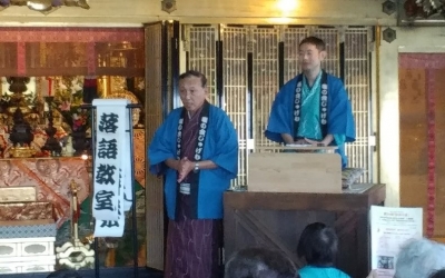 JUGEMテーマ:落語 2016年に参加させてもらった 「アンジェ落語会」のご縁で 当会メンバー3名がお招きにあがりました。 「善照寺観月落語会」 10月13日(土)1時30分開演 善照寺はJR法隆寺駅下車バスで約10分 浄土真宗の由緒ある寺院です。 「三味線演奏」 三川美恵子 今回の席亭。場慣れした安定感のある舞台です。 このあと、出囃子演奏までしてくださいました。 「落語教室」 寿亭司之助・歩鱈小酔 主催者かっての希望で行われました。 「代書屋」 潮吹亭くじら 「ちりとてちん」歩...