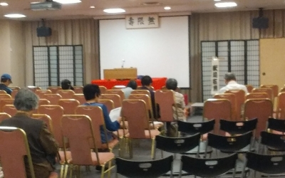 JUGEMテーマ:落語 おかげさまで 「噺の会じゅげむ」の定例会、 「第106回・高槻市民寄席」は 入場者163名の大入満員となりました。 お越しくださいましたお客様方に 厚く御礼申し上げます。 設営を終えたばかりの会場 「ミニ活動報告」は 明日以降の更新とさせてもらいます。