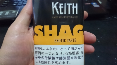 JUGEMテーマ:手巻きタバコ 先日、お友達のしらいし商店さんに行った時に、あのマニトウシリーズが廃番になると聞いてたいそう驚きました。 やっぱりカビ騒動が頻発したのが原因みたいですね、残念です( ;∀;) そんな中、今回は前回のキース・シャグシリーズからエキゾチックテイストを吸ってみました。 キースシャグ・エキゾチックテイスト、パッケージはこちら。 この色合いいいですね、黒に黄色って結構映えますよねぇ〜 パッケージ越しからあま〜い香りが漂います。 シャグはこんな感じ。 ...