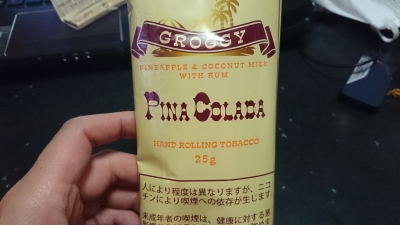 JUGEMテーマ:手巻きタバコ ブラジルワールドカップ日本代表選出されましたねぇ〜 個人的には大久保嘉人選手の選出はかなりうれしい! 福岡出身の選手ですからね、活躍してほしいですよ〜♪ さて、久しぶりのレビューはグロッギーシリーズから「グロッギー・ピニャコラーダ」です。 ピニャコラーダってのはラム酒をベースに、パイナップルジュースとココナッツミルクを砕いた氷と一緒にシェイクして作ったカクテルです。 ピニャコラーダを使ったシャグは以前サーフサイド・ピニャコラーダを吸った事がありか...
