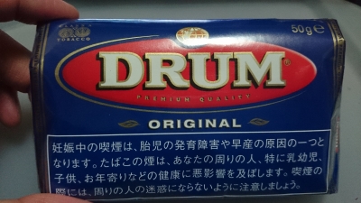 JUGEMテーマ:手巻きタバコ 台風接近中ですねぇ… それに伴って日本各地で大雨による災害が増えてるみたいですね。 今後の大雨&台風情報に注意してお気を付け下さいませ。 前回の「ドラム・ブライトブルー」。 ホントに吸いやすくていいタバコでした。 リピートしちゃうかもね! て事で今回はドラムシリーズのトリって事で「ドラム」ですよ! ドラム(オリジナルって後ろにつけていいのか迷ってる:笑)パッケージはコチラ! 青い!(笑) あっ!オリジナル(?)が青だからちょっと軽めのが水色だ...