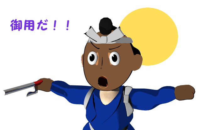 岡っ引き?役人?? 某トレーニングdvdでおべんきょ中。 ・今日のオヤジ 「郵便書留のお兄さんがいい男だった」。 おお、どんどん悟ってきたのう!! JUGEMテーマ:3DCG・モデリング