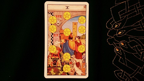 JUGEMテーマ:神様の音 おはようございます 昨夜はまさかの寝落ちで10Pentaclesの続きを書けませんでした。 失礼しました 10Pentaclesです このカードが他のカードと最も違うのは ペンタクルが絵柄に入り込まずに浮いていることでしょう。 10個のペンタクルは生命の木のセフィロートを形づくっています。 ある特定の絵柄として描かれていないのは、生命の木の普遍性を表現しているのだと思われます。 石造りのアーチが見えます。 アーチの向こうは平...