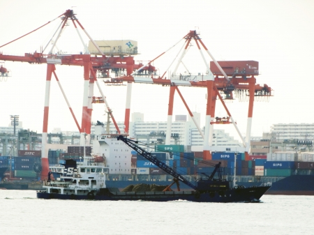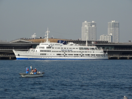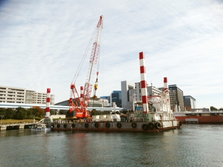 JUGEMテーマ:船と文化 お台場の「船の科学館」前から見た、東京湾の風景なのでございます。 彼方には東京湾巡りの白い「クルーズ船」が出航して行く姿が見えて。 手前には赤い旗を掲げた「警戒船 いさな3」が浮かんでいるのでございます。 あい? あにを警戒してるんだべが??????? との、オアニイサンのお声には、2016年12月22日の記事をご覧くださいと。 ヘコヘコしちゃうモノノケ館長。 画面には写っていないのですけど、左手前でクレーン台船が作業中。 おそ...