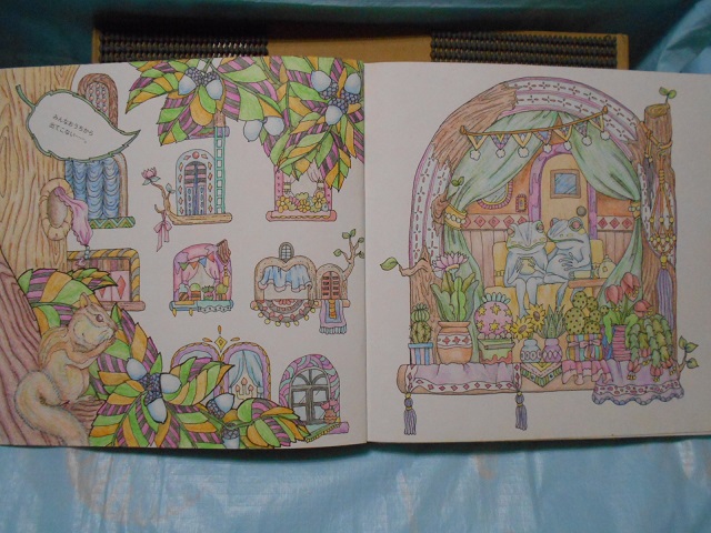 JUGEMテーマ:塗り絵 物語のある美しい塗り絵 ロマンチック・ジャーニー (大人の塗り絵) posted with ヨメレバ INKO KOTORIYAMA 河出書房新社 2015-09-18 カエルのお家……なのかな。 リスさんの色に迷った。結局、普通に茶色にした。 葉っぱの色は黒を入れたくなって、黒を入れたら葉っぱから遠い存在になったような気がする。 ドングリは茶色に飽きて、青色に。 カエルの色も迷ったけど、青色に。 理由は周りの...