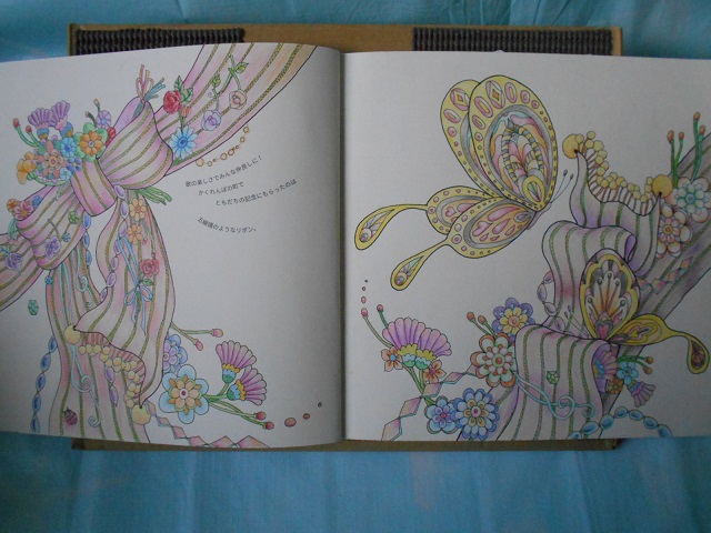JUGEMテーマ:塗り絵 物語のある美しい塗り絵 ロマンチック・ジャーニー (大人の塗り絵) posted with ヨメレバ INKO KOTORIYAMA 河出書房新社 2015-09-18 蝶々のページ……実は半分以上が妹が塗ったもの。 右側ページ……最初のページと一緒。 なので、妹に塗ってもらいました。 左ページは力尽きて、「もうやらない」と言い始めたけれど、 「同じ塗り出来ない!リボンだけでも塗って」と強制しました。 そんな...