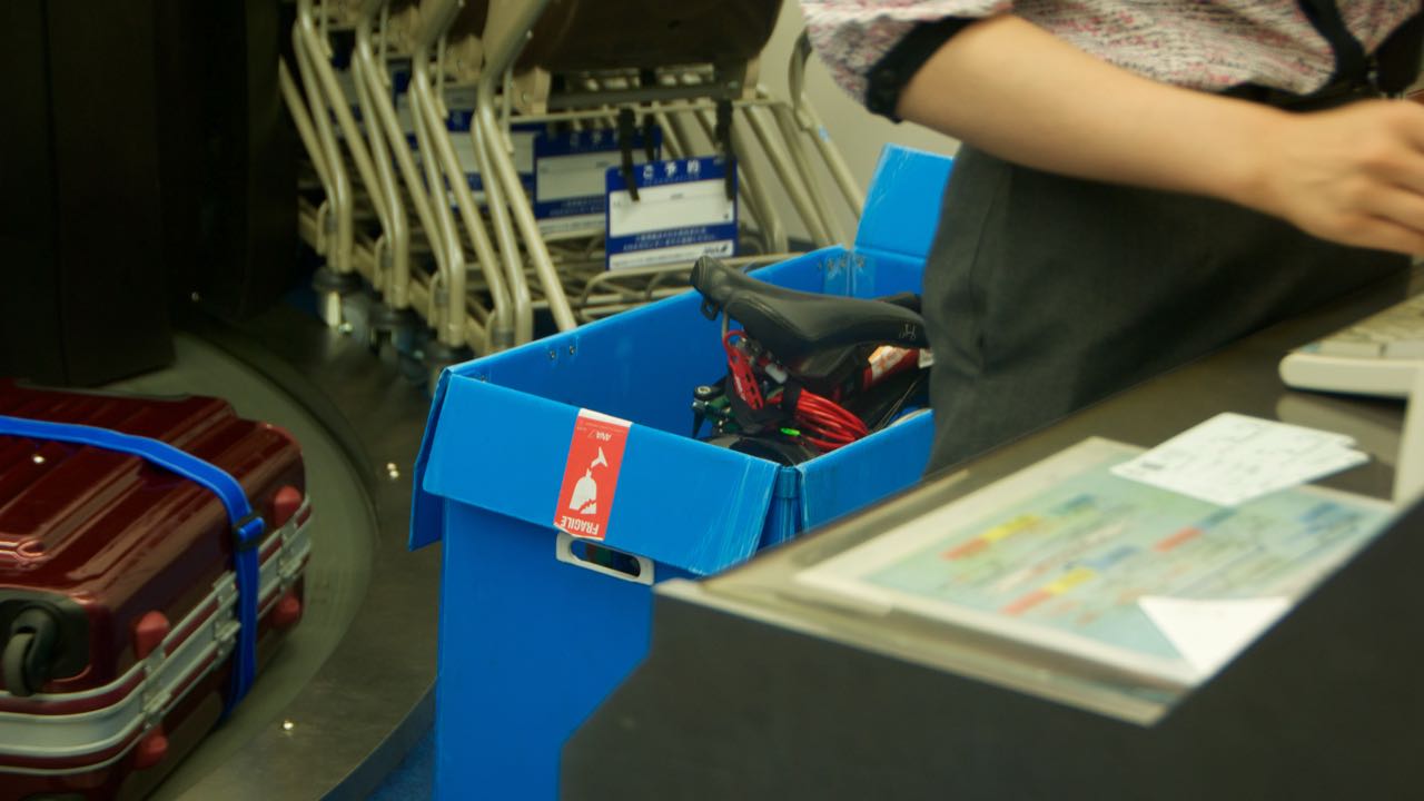 2015年の夏もまた、ブロンプトンと共に沖縄に行ってきました。 手荷物カウンターでは、いつもと同じように当ブログの輪行記事の写真を見せ、紙コンテナに収納していただけるようにお願いします。この後は空港係員の方にお任せとなるので、那覇空港に着くまでの間、ブロンプトンがどのように扱われているのかはわかりません。しかし今回、ブロンプトンが飛行機に積み込まれる瞬間を撮影することができました。