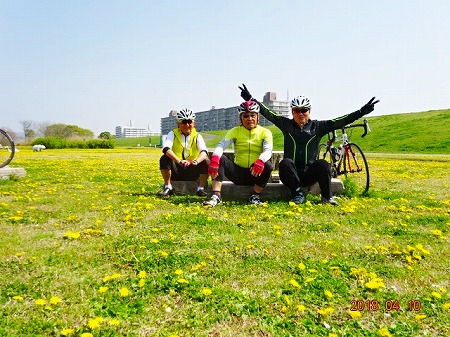 JUGEMテーマ:じてんしゃ全般 プライベートウオーキングの記事が多いので たまにはツーリングの写真も VIX日高組は毎週火・土に淀川を走っています 今週の火曜日 陽光に誘われて嵐山へ 行きは気持ち 良かったのですが 帰りはいつもの西南西の向かい風 ア〜しんどいな〜 淀川途中でタンポポが 思わず写真を 気持ち良し 下の写真は嵐山の河川敷で 途中松尾大社そばのブルーオニオンでカツサンドをデリバリー 楽しいランチでした