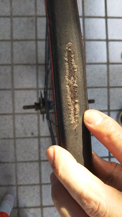 ここ数日、ロードバイクではなくMTBに乗ってました。 金剛山ロープウェイ前に向かって走っていたら某大学のサイクリング部に抜かれました。 「倍ほど年の違うオッサンがええ勝負するやん」という喜びと、 「くそー!ロードやったら抜かれてなかったかも?」という悔しさで、 ちょっと複雑な思いをしてみたり。 それはともかく、なぜMTBに乗っていたかというと、ロードバイクの後輪がすり減って芯が露出してしまい、交換用のタイヤが届くまでロードバイクに乗れ...