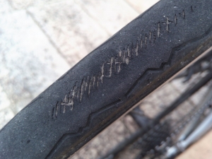 先日、近くをサイクリングして休憩していると、後タイヤがすり減って芯が露出していることに気づきました。 うわっちゃーっ Σ(´Д`;) 昨年の秋頃には既にすり減っていて、早めにローテンションしないといけないなーと思ってたんですが…。 ちなみに前タイヤはそんなにすり減ってません。 乗り方が下手なのか、もしくは坂ばっかり上ってるからこうなるんでしょうか。 ともあれ、このまま乗り続けるわけにもいかないので、早速タイヤを交換することにしました。 パナレーサー...