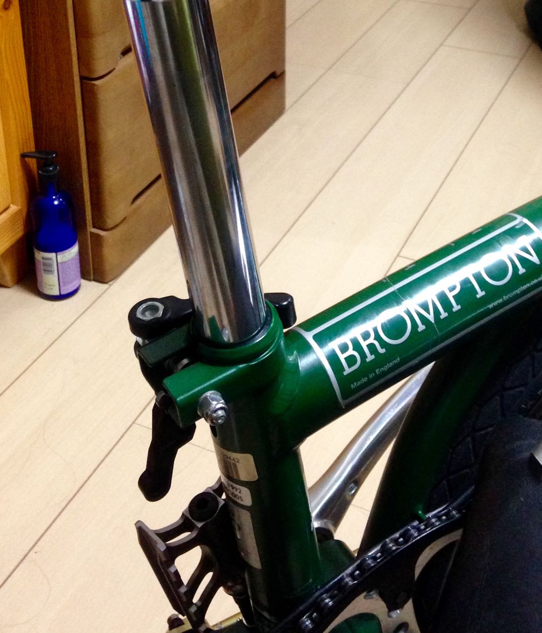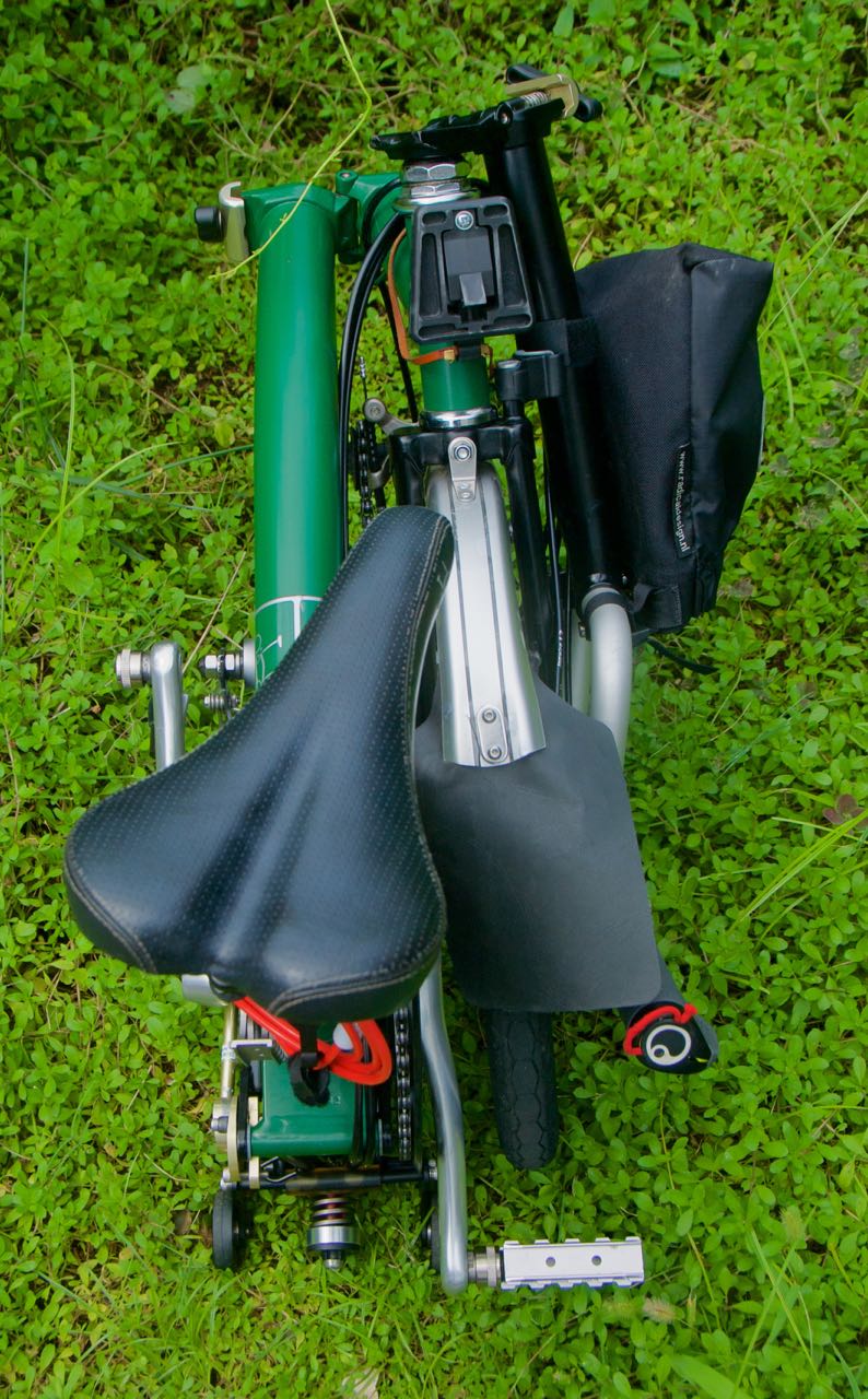 折り畳んだブロンプトンは、重心が右側に寄っている。であるからして、折り畳んだ状態での持ち手となるサドルの先端が、正面ではなくやや右を向いた状態となるように固定すると、持ち上げたときに何かと都合が良い。 重心が右側に寄っているが故に、折り畳んだブロンプトンは非常に不安定であり、簡単に右側に倒れてしまう。このことが気になるのであれば、加茂屋のブロンプトンステイや、BikefunのExtendable Easy Wheel Armを使ってみるのは一つの手であろう。私は折り畳んだブロンプトンの不安定さが非常に気になっている。 &...