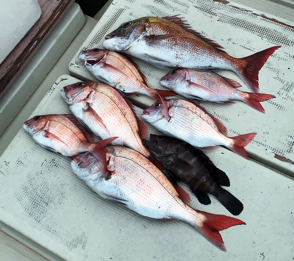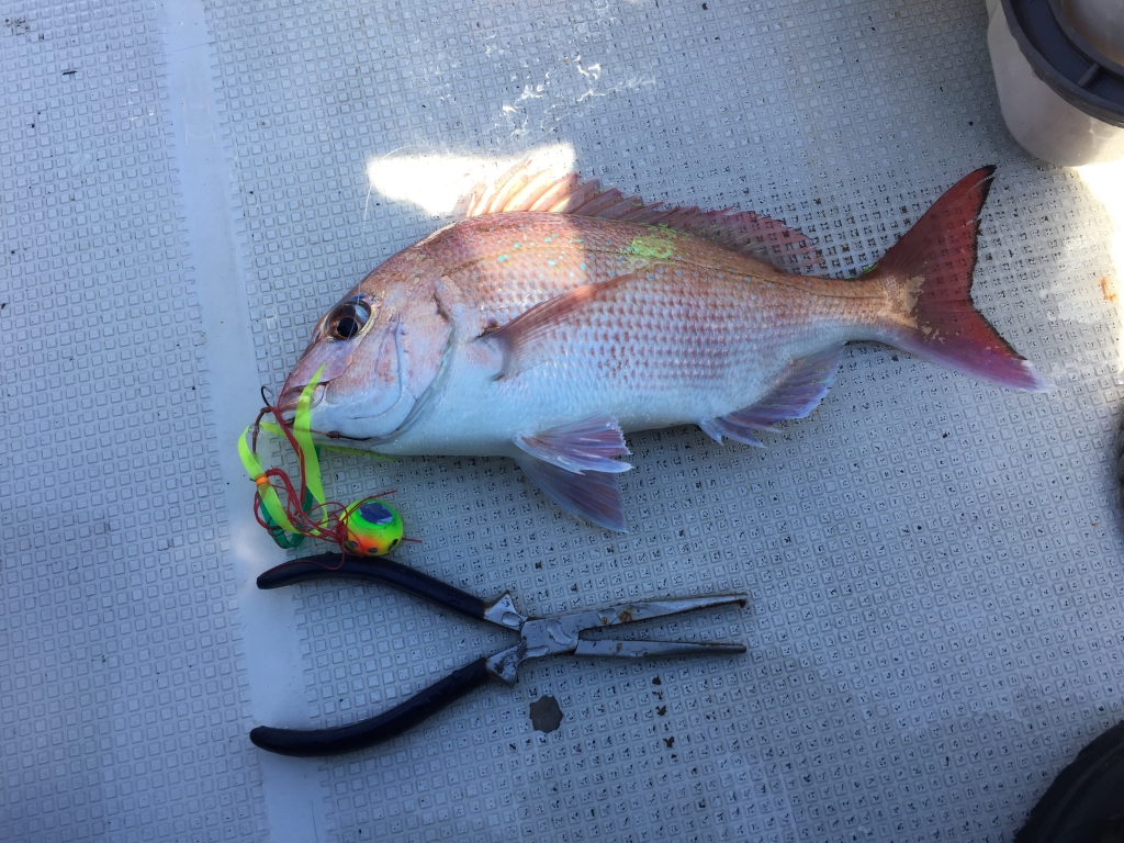 JUGEMテーマ:魚釣り 4月29日 キス釣り&鯛ラバ 義兄とTK田くんとで、平成最後の釣行です。鯛ラバが相当厳しそうなので、保険のつもりでキス釣りをまずすることにしてみた。 港を出たすぐのポイントからボチボチと探っていくが、エサすら取っていかない、何とか私が一匹釣るも、義兄とTK田くんもダメ。О曽根もダメ、US下もダメ、結局M本ポイントの岸側をやるとTK田くんが2匹ゲット、この調子ではヤバいと思い鯛ラバにスイッチすることにした。 養殖イカダの近くから流してみると即アタ...