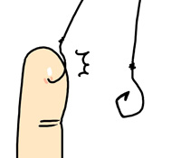 JUGEMテーマ:魚釣り 釣りをやらない人には何の関係もないかもしれませんが、 釣り人に起こりやすい事故があります。 自分を釣ってしまう。つまり釣り針が体に刺さってしまうってこと! 今年諸々ツイてない僕ですが、またまたやってしまいました。 先日、釣っちゃったんですよ、自分を。 釣り場についてすぐのこと、餌をつけた釣り針を持ったまま移動しようとしたところ、 足が滑って姿勢が崩れ…。 あれ? なんか指が引っ張られる。 針が左手の中指にぶっさり刺さってました。 おおよそ5mm...