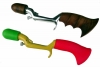 JUGEMテーマ:魚釣り 本日、両極端なハンドルを作ったのでアップしてみました。 上はハワイアンコナ材の手彫りのグリップ付き。 希少な木材のハワイアンコナを削って成型後、樹脂を浸透させて強度をアップ、その後チークオイルで磨いてあります。 トラディショナルな重厚感があるハンドルです。 さて、下の対照的なハンドルは、見るからにポップな感じ! イエローの高耐性塗装の本体にネオンピンクのラバーグリップ。 ヘッド部はネオングリーンのラバーヘッドとなっています。 本体部分は同じものなのに、素材と色が...
