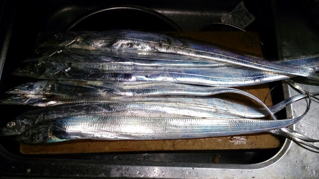 JUGEMテーマ:魚釣り 最近秋っぽくなってきたので、ドラゴン(太刀魚)を求めて行ってきました 潮もよさそうやしいい感じを願って今年初の太刀魚狙い 明るい間から、メタルジグに、かまぼこと太刀魚が連続ヒット たまに回遊したときに、パタパタ釣れる感じだった 2時間ほどやってみました。 私… 太刀魚7(指3.5) かまぼこ3 サイズはぼちぼちだったけど、あたりも多くていい感じだった。 にほんブログ村