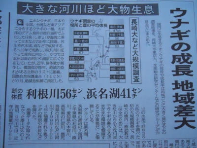 JUGEMテーマ:魚釣り 私が通う河川は、全盛期のカールルイスであれば、いとも簡単に飛び超えてしまいそうな小河川・・・随分オーバーで、本当は途中で落ちます。 リリースサイズばかりが釣れ、まるで「ウナギの小学校」で釣り糸を垂れているようです。 「サイズが小さい」という不満は、ウナギ釣り愛好家の共通の悩みのようなので、今回はとっておきの情報として、「大型の釣れる河川はここだ!」をお伝えします。 先月ヒントになる新聞記事を目にしていました。 長崎大学などが全国12の水系で、6,388匹のウナギを捕獲し、5年...