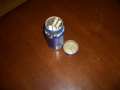 鮎釣りで胸まで立ち込んだり、川の中で転んだ拍子に、チョッキの胸ポケットに入れた煙草が水没したことはありませんか?私はポッカコーヒーの空き缶を活用しています!煙草15本とライターが収納できるスグレものです。JUGEMテーマ:魚釣り