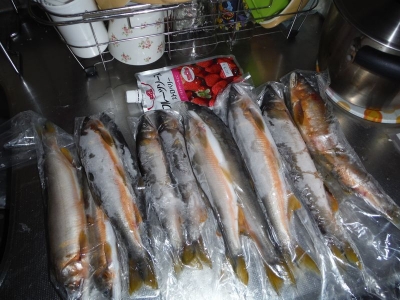 魚を食べるのも好きかと言えば、そうでも無い 私はどちらかと言えば魚より肉好きです。 たまたまかも知れませんが、私の周りの釣り好きな人は魚を食べ飽きたのか肉好きの人が多いような気がします。 うちの冷凍庫には8月に釣った鮎がワラワラしてて、平均で26cm前後です。 写真中央の小ぶりな鮎は9月に入ってから釣れたものです。 お盆前に26cm以上が釣れはじめた頃には、来週には尺鮎だーーーー!!と思っていましたが、その後の長雨&大水で川の様子が一変。 痩せた白っぽい鮎。解禁間もない頃みたいな小さな鮎しか釣...