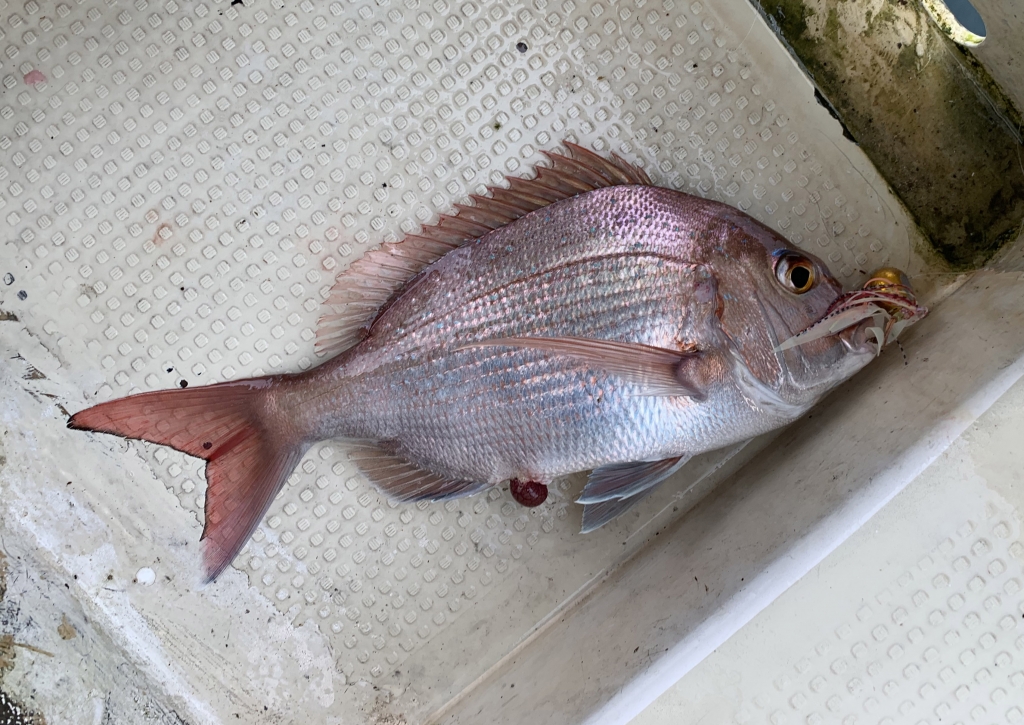 JUGEMテーマ:魚釣り 8月25日 鯛ラバ 台風10号の通過後初めての出船、海の状況はどんだけ変わったかなぁと思いながら、いつものようにTK田くんと出撃することになった。 まずはやはりAブイ周りの様子を見ることに、台風前はいっぱいいたベイトが全然いない!隈なく探すも、小っちゃいベイトの群れがいるだけで溜まっているところは全然ない、ヤバッ!!この前までのベイトパターンが通用しないじゃん!と言いながらやっていると、早速TK田くんのロッドがしなってる、「重いだけで全然引かん!...