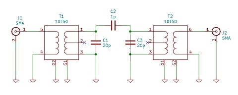 JUGEMテーマ:アマチュア無線 トロイダルコアによるバンドパスフィルターが高い周波数で減衰が足りないのはなぜか。 回路は次のように、同調回路(L2:C2, L3:C3)とインピーダンス変換を行うマッチング回路(C1:L1, C4:L4)からできています。 マッチング回路はハイパスフィルターなので、低い周波数は減衰しますが、高い周波数は減衰しません。 試しに、最初に試したサトー電気のFCZ互換コイルを用いて、この回路を組んでみました。 トロイダルコアのときとほぼ同じようにな...