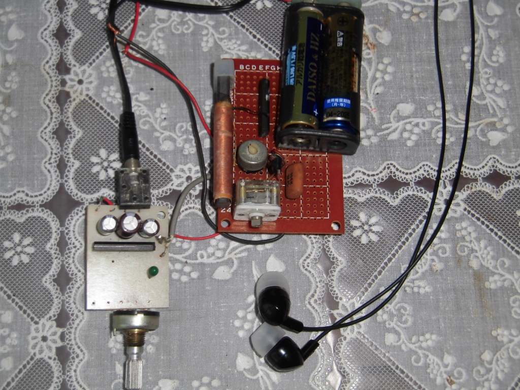 JUGEMテーマ:アマチュア無線 今日ようやく自作ラジオが出来たが、今まで電波教室で作っていたものと大差はない。 今イヤホーンで聞いているのがスピーカーでも聞けるようにしただけのものであり、こんな ものであろう。 やはりダイレクト受信では何度作っても同じであろう。ネットで色々検索したが今度はICは使うが スーパーラジオで無ければ受信感度も選択度もやはり悪いという事である。 年末までには何かまた作ってみよう 今朝は...