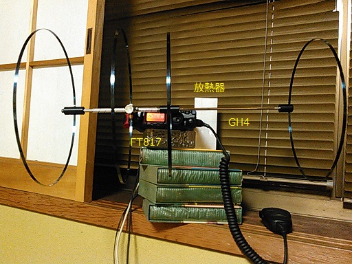 JUGEMテーマ:アマチュア無線 GH-4で初めてづくし! 先ずは運用時の写真をご覧あれ。 もっと何とか設置方法に工夫はできなかったのか?これでは操作し難いだろう!」という声が聞こえてきそう。小生もそう思う。実は、三脚付きの自撮り棒を工夫してこのGH-4を支持し、BNCコネクターケーブル5mでFT817とつなぐ計画だった。ところが、そのケーブルとGH-4とを接続する「BNC中継コネクタ」を忘れてきていたのだ。(おっちょこちょいの小生らしい…)そこで、開発者である杵...