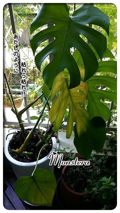 金運UPや家庭運UPのアイテムとしても 知られている観葉植物のモンステラちゃん クったりして元気ないんざますの ってのもモンステラを普段置いてる場所がテレビの横なんで電磁波が 悪影響及ぼして元気なくなってまうの知ってはいるんざますが リビングの配置や空間を重視しちゃうとどうしても置き場所が 電磁波バンバンのスパルタ教育状態になってたんだけど このままでは取り返しのつかへんところまで枯れてまう〜ってことで 新たな救世主の丈夫で日当たりが良すぎると元気なくなっちゃう ...