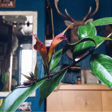 先日蕾の写真を載せたエスキナンサスですが、ついに咲きました。変わった花でした(ピンボケは残念...)。 咲いてみてわかったのは、エスキナンサス・ラディカンスという種類ではなく、エスキナンサス・スペキオススらしいという事。季節外れの開花だからか、色味があまりよくない。 挿し木から順調に育ち、花まで咲かせたわけですが、あとは土間の工房で寒い冬を乗り切れるのか、ただそれだけが心配です。 GALLON http://www.gallon.jp (ガロン / 革製品、革小物、真鍮アクセ...