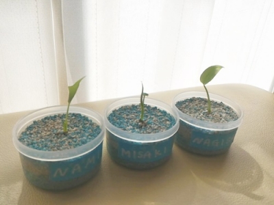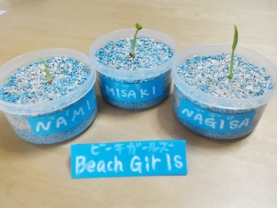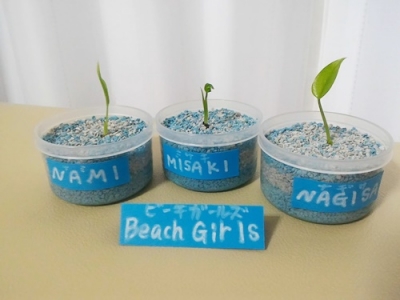 種を蒔いてから17日目。 最近、ふっと気が付いたことがあります。 それは、伸びた芽が太陽に向かって動いていること。 もしかして… 当たり前のことなのかしらっ ( ̄▽ ̄|||) 太陽が右にあると、ビーチガールズたち3人揃って右に倒れていきます。 太陽が左にあると、ビーチガールズたち3人揃って左に倒れていきます。 試しに1日の間に何度か向きを変えてみたところ、 やっぱり太陽に向かって倒れていきます。 生きてるな〜〜〜  ...