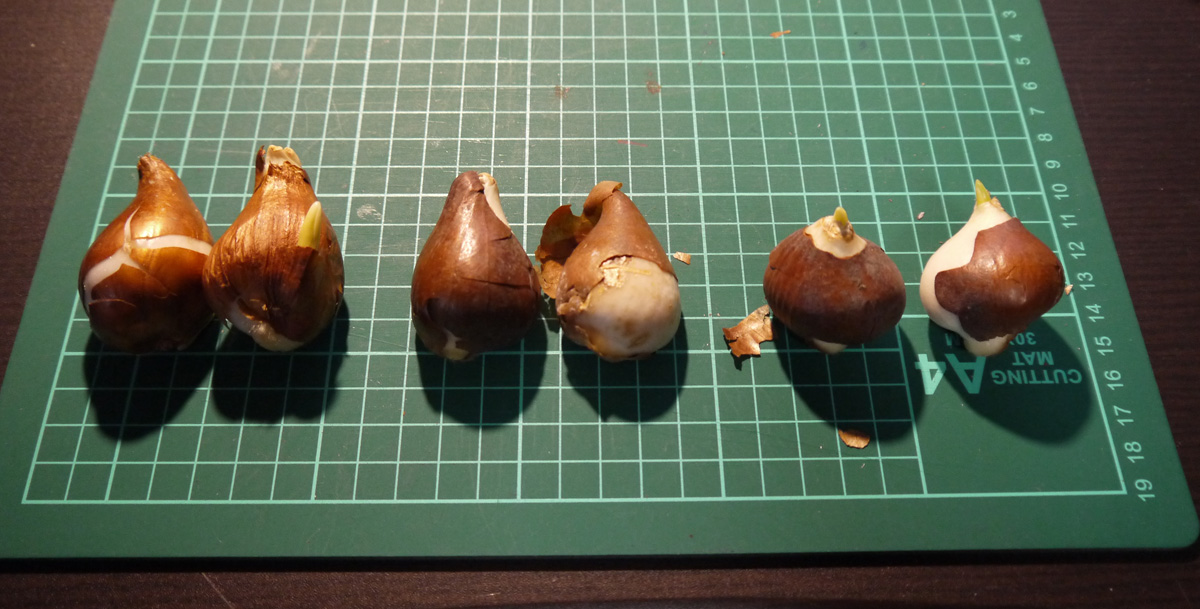 JUGEMテーマ:植物 先日、チューリップの球根を植えました。 左から2つずつで、シンフォニー、ロイヤルテン、クラウディア ネットでどんな花が咲くかは見るのやめて楽しみにすることにしました。 ただ、植え方を見ると、向があるみたいで…平らな面があるからその面を揃えると葉が隣と重ならないらしい。 チューリップ園のキレイに並んでいっぱい咲いてる所はきっとそれができてるんですね。 僕が見て平らな面が確実にわかったのは真ん中のロイヤルテンだけ… ん〜・・・どうしよ 両サイド...