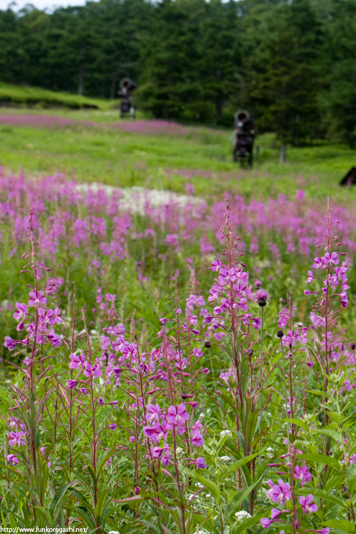 JUGEMテーマ:植物 2008年8月の画像 ノビタキとヤナギランを探してスキー場に。 ヤナギランはあるけど斜面にノビタキは居ないのかな。。 真夏木々の緑とヤナギランの赤紫やホザキシモツケのピンクは良く似合う。 ソロソロ行きたいけど天気が。。