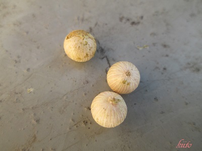 JUGEMテーマ:植物 毎朝 ダッくんをベランダに出す前に 落ちている物の確認をします。 うっかりすると食べちゃうので! そんな朝の日課の時に、発見したもの。 実?種? まん丸で白くて、少し茶色いのは鳥のフン? ってことは、種? こんなときは画像検索! で、出てきたのは 貝の写真 ^^; それならと言葉で検索。 「 まん丸の白い種 」 で、出てきたのは ナンキンハゼの写真。 う〜ん 似てるけど...