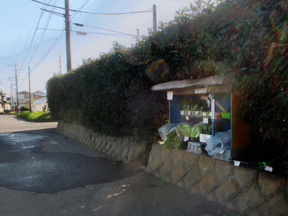 お散歩旅に出かけると、農家の軒先などに無人販売所や直売所があったりします。お散歩旅も後半になると、こういうところでちょいちょいと食材を手に入れることが多い。 今ご近所の農家でつくっているものは白菜、キャベツ、長ネギ、春菊、ダイコン、ホウレンソウ、ナス、キュウリなどで、おもだった野菜はだいたい手に入る。無人販売所だと、おつりの関係で基本100円、高くても200円といったところなので、1000円持ってゆくと、背中に背負ったバッグがだいたいいっぱいになる。これはありがたい。 ...