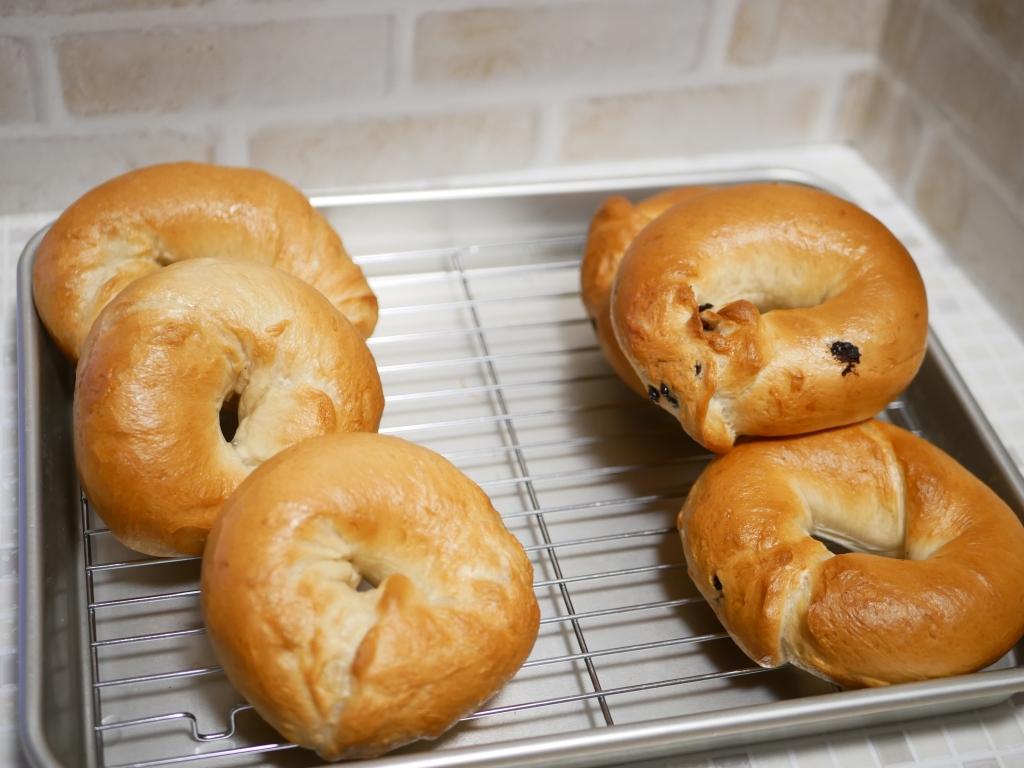 ベーグル。 おうちパンやかんたんおやつでお世話になっている奥林純子先生に教えていただいたレシピでベーグルを焼きました。 チョコとプレーン。 プレーンンはスライスしてサーモン&アボカド&クリームチーズのサンドイッチに! おいしすぎるー! チョコチップを巻き込んだ方は、温かいうちに食べるとチョコがトロ。 (Cottaの焼き菓子用チョコチップだったけど結構溶け気味) ベーグル、お鍋を出すのが面倒とか思っていたけど、発酵時間が短いし意外とすぐできていいですね。 JUGEMテーマ:料理...