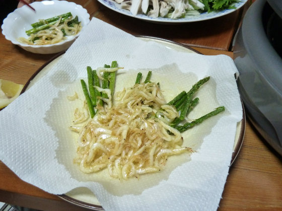 久しぶりのパスタネタですが、話は最近あちこちのスーパーでみかけるようになった外国産の白エビからです。 白エビは「富山港の宝石」とも呼ばれる大きさ6〜8cmぐらいの深海のエビですが、同じ種類のものがタイワンあたりに住んでいて、これが比較的安価に輸入されるようになった。でもこちらは大きさがやや小ぶりで、本家のように殻をむいてお刺身にするみたいなことには向きません。 でどうするかというと素揚げがいちばん、とても甘みがあって美味しい。味付けどころか塩を振ることさえも不...