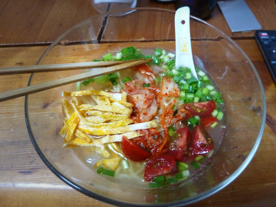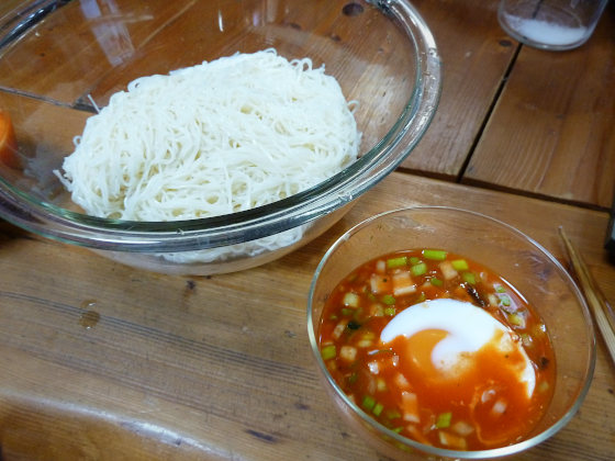 だんだん暑くなってきて、冷たい麺類が美味しい季節になってきた。ラーメンやパスタはよくつくるけど、麺類は全般的にみんな好きです。 問題はあっさりしすぎて栄養価が下がりがちになってしまうことかな? ということで最近つくったもののなかから、完成度の高いものをご紹介します。 こちらはつけ汁を工夫したお素麺です。そばつゆ(辛めのものが良い)50mlにカゴメの野菜ジュース100mlを加え、半熟の卵をおとしました。卵の加熱加減は電子レンジで200W2分10秒といったところです。 こ...