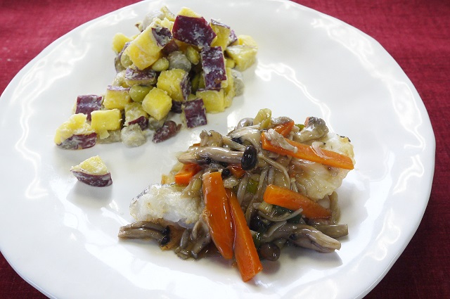 JUGEMテーマ:料理 安心工房のお惣菜セット・無添加手作り「食養御膳」は「主菜と副菜」で1食分、日替わりメニュー「五食分」が入ったお惣菜セットです。 主菜「魚のきのこ中華あん」 副菜「さつまいものサラダ」 ●タラはサッとグリルにし、きのこたっぷりのソースをかけました。秋らしいお惣菜になりました。 副菜は、さつまいものサラダ。茨城のたくさんのさつまいもとごぼうを蒸し、お豆・ヨーグルト・マヨネーズと一緒に合わせました。 ...