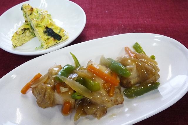 JUGEMテーマ:料理 安心工房のお惣菜セット・無添加手作り「食養御膳」は「主菜と副菜」で1食分、日替わりメニュー「五食分」が入ったお惣菜セットです。 主菜「鶏肉の唐揚げ 和ソース」 副菜「小エビとねぎのオムレツ」 ●鶏肉はしっとりするよう調味液に半日漬け込みました。にんにく生姜入りの醤油を付けて唐揚げにし、和ソースのあんをのせました。 副菜は、小エビとねぎのオムレツ。旬のネギと、小エビがたっぷり入っています。 ●栄...