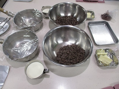 JUGEMテーマ:料理 昨日、料理教室に行って 『生チョコ』と『チョコマフィン』 を習ってきました。 生チョコの材料です。 今回は水あめが入っています😊 水あめと生クリームを温めて チョコとバターを入れたボウルに移しグルグル混ぜ トレイに流し込み冷やします。 固めたらココアをまぶして切ります。 冷やしている間にマフィンも作りました。 マフ...