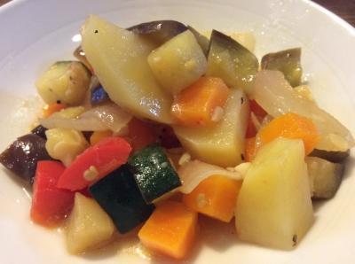 暑くて 熱くて 〜 たまには 裕子食堂 休業したいのだが … パクパクマン達が 腹減った〜 とやって来る。 外食したいところだが… どーも外も 落ち着かない。 よーし、観念して やるか〜 婆さん、一品提供。 ラタトゥイユ。 酸味付はフレッシュレモン🍋 大きなにんにくを2個使用。 ジャガイモ、玉葱、人参、赤ピーマン、真っ赤なトマト、茄子、ズッキーニ。 ちよっと写真写りが悪いが 今日...
