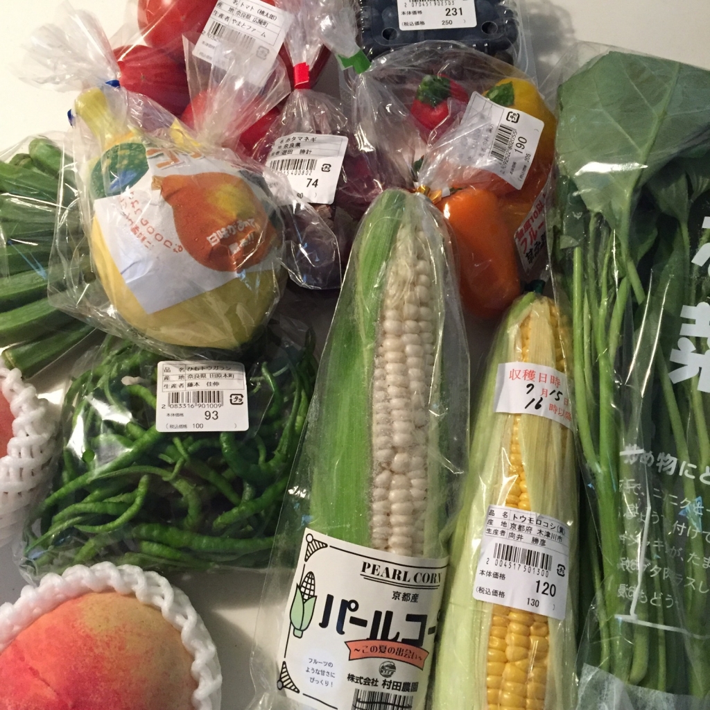 JUGEMテーマ:料理 今日はおいしい野菜の買い出しへ。 本当は道の駅とか、郊外の農産物直売所に行きたかったんだけど、 思い立ったのが15時前。 車で30分ほどの鴻池イオンにオープンした農産物直売所へ。 今日のお買い上げ。 桃 パールコーン とうもろこし オクラ コリンキー ひもとうがらし トマト(桃太郎) 赤玉ねぎ フルーツパプリカ ブルーベリー 空心菜 スーパーでお目に掛かれない野菜がたくさん! 今晩...