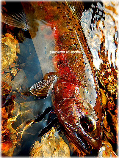 2週間程ですが、 無休で仕事をしていると、フラストレーションが溜まるもので 本日強行で休暇奪取! 即、渓へGO! 開放〜 実は、 予定では昨日、廣瀬屋旅館の若旦那と釣行計画を立てていたのですが 急な仕事ボツ 若旦那ゴメンナサイ・・・ 山の神様はこんな私を哀れに思ってくれたのか 良形でカッコイイ山女魚との出会いを与えてくれました。 若旦那と行かなくてよかったかな??? 若旦那、計画を立て直して次回は必ず・・・? JUGEMテーマ:トラウト