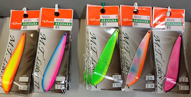 ロデオクラフト MTレイクス 左2色 <オリカラ> AGASA MK-II 、ALBION 欠品サイズ再入荷! (13g, 16g, 19g, 23g) 上記のオリカラは、アカサカ釣具通販部にてもご購入出来ますので、遠方の方はこちらをご利用下さい。 右3色 <新色> (左から) グリチャーY、 オレンジレインボー、 ピンクB 入荷! (13g, 16g, 19g)