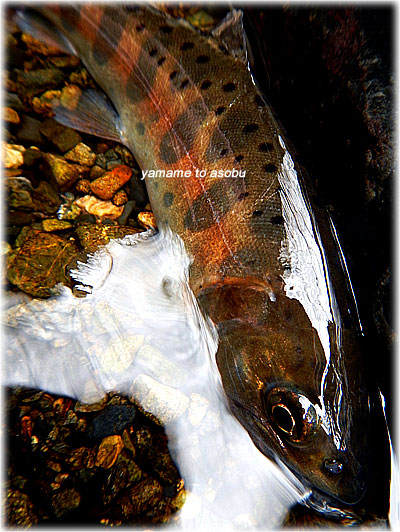 プレッシャーの高い河川区間からやっと出たこのヤマメ魚に 安堵しました。 が・・・この後は好調で、竿抜けポイント見っけー!でした。 JUGEMテーマ:トラウト