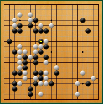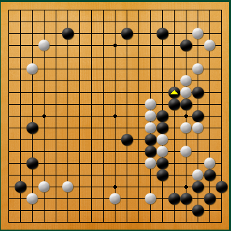 第34期女流本因坊戦5番勝負第4局(白番謝の中押し勝ち)を少し振り返る。 【基本図】黒67手目(△)と切ったところである。あげはまは黒白ともに0である。 ↑左辺白がどうなるかという険しい局面。とりわけ白にとってはピンチかもしれない。 【実戦の進行その1】白は左下1とつけた。 ↑以下黒2白3となり、左下の白は生還した。 しかし、黒4のカカエが手厚く、左辺の白は生きそうにない。 恐らくは黒の成功、白の失敗であろう。 【実戦の進行その2】 ↑白は1と下辺を補強して地としたが、黒は2から4と右辺に...