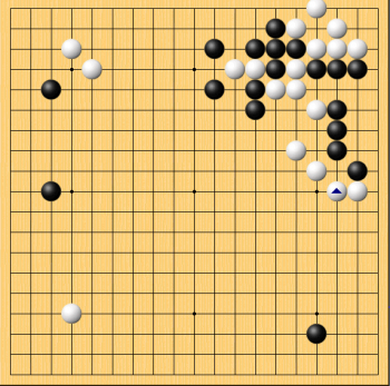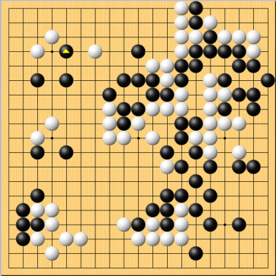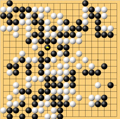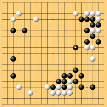 囲碁名人戦七番勝負(井山vs河野)が開幕した。 今日は第1局1日目終了した。49手目まで進行、50手目を白番井山が封じた。 ↓これが1日目の進行図。黒が△と打ったところである。 言うまでもなく、右辺白がどうなるかが現時点での焦点。井山がどのようにこの白をしのぐか。 素人目だと、白が何とかしのぎそうな気がする。 (河野が黒番。アゲハマは黒1、白0) JUGEMテーマ:囲碁