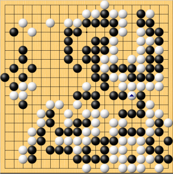天元戦挑戦者決定戦が9月8日におこなわれ、黒番高尾が195手まで中押し勝ちを収めた。 ↓これが終局図である。黒△と打ったところまで。 実は左下の白一団が死んでいる。これでは白が投了するのもやむを得ない。 JUGEMテーマ:囲碁