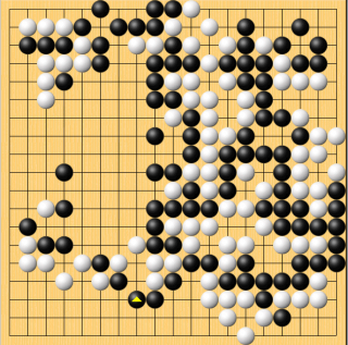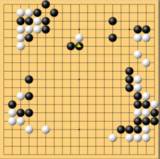 黒番を引いたのは井山。63手まで進行し、64手目を伊田が封じた。 ↓これが63手目時点での盤面。アゲハマは黒が1、白が0。 形勢は自分にはわからん。だけど、黒の厚みを好むか白の実利を好むか。意見が分かれそうだ。 若いときの私だったら、しっかりと実利を確保した白を持ちたかったかもしれない。 しかし年寄りになた私だと・・・黒で打ってみたいかも。まあ、形勢は不明なんだろう。 JUGEMテーマ:囲碁