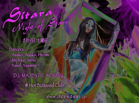 今週末、2014年 8/9(土)開催の Devadasi Studio の ベリーダンスショー SITARA Night は、 おかげさまでご予約が満席となり、一旦予約受付けを終了致します。 なお、当日券が少し出ます。ご予定合う方ぜひいらしてください♡ JUGEMテーマ:ベリーダンス